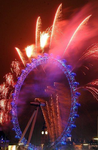 Bunga api dilepaskan di London, Britain pada 1 Januari 2004.