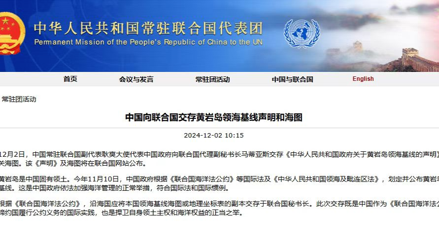 Kenyataan China mengenai Garis Dasar Laut Wilayah Pulau Huangyan Diserah kepada PBB