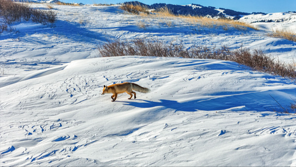 Rubah Merah Bermain di Salji