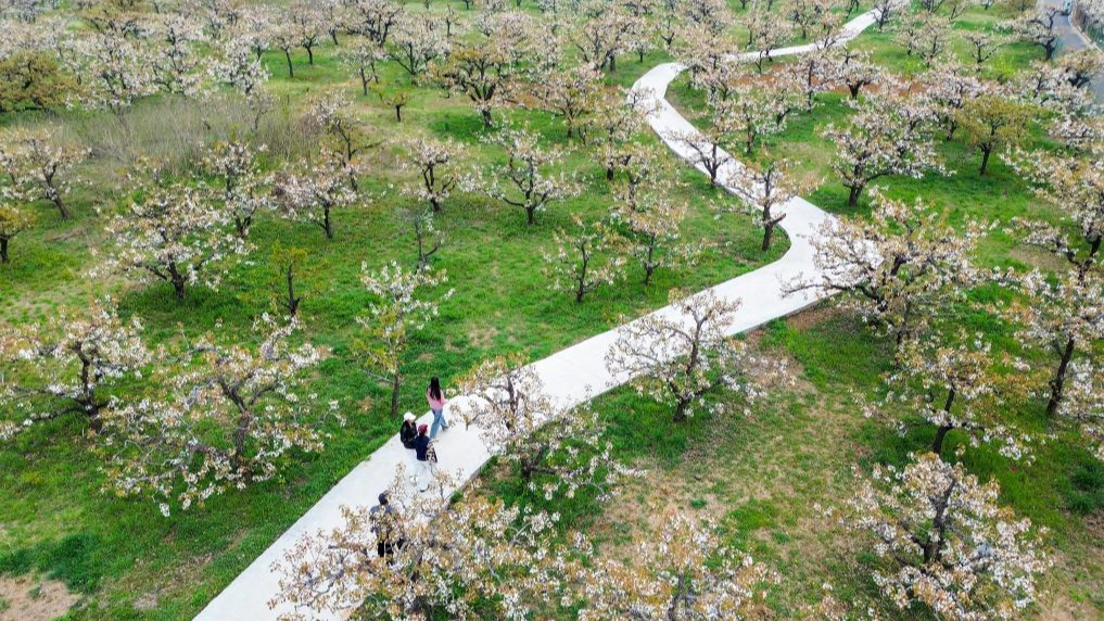 Indahnya Kebun Pear pada Musim Bunga